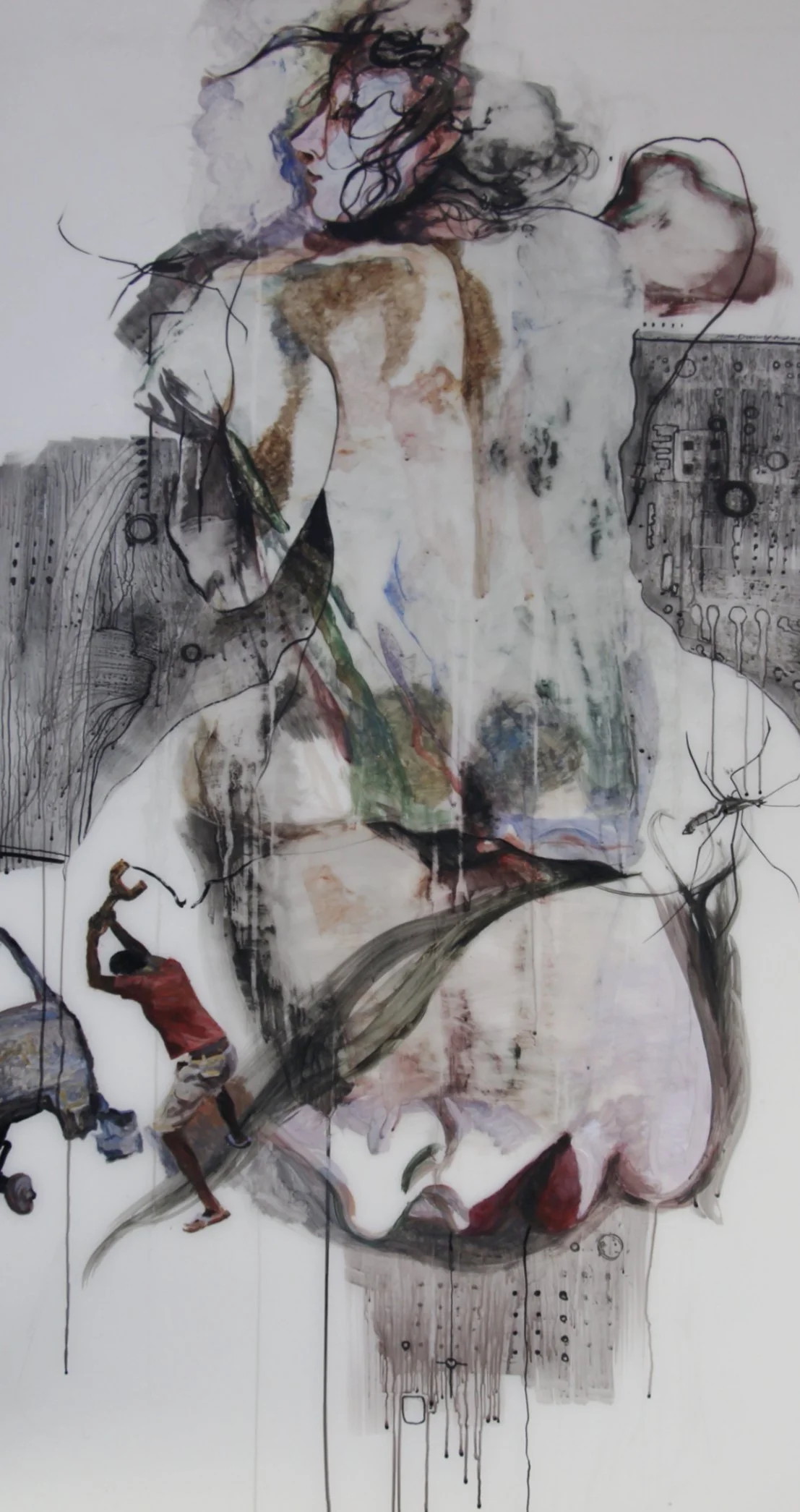 Separation and Reuniting #3, 2017 Ink&Acrylic on Mylar 70X40 inches